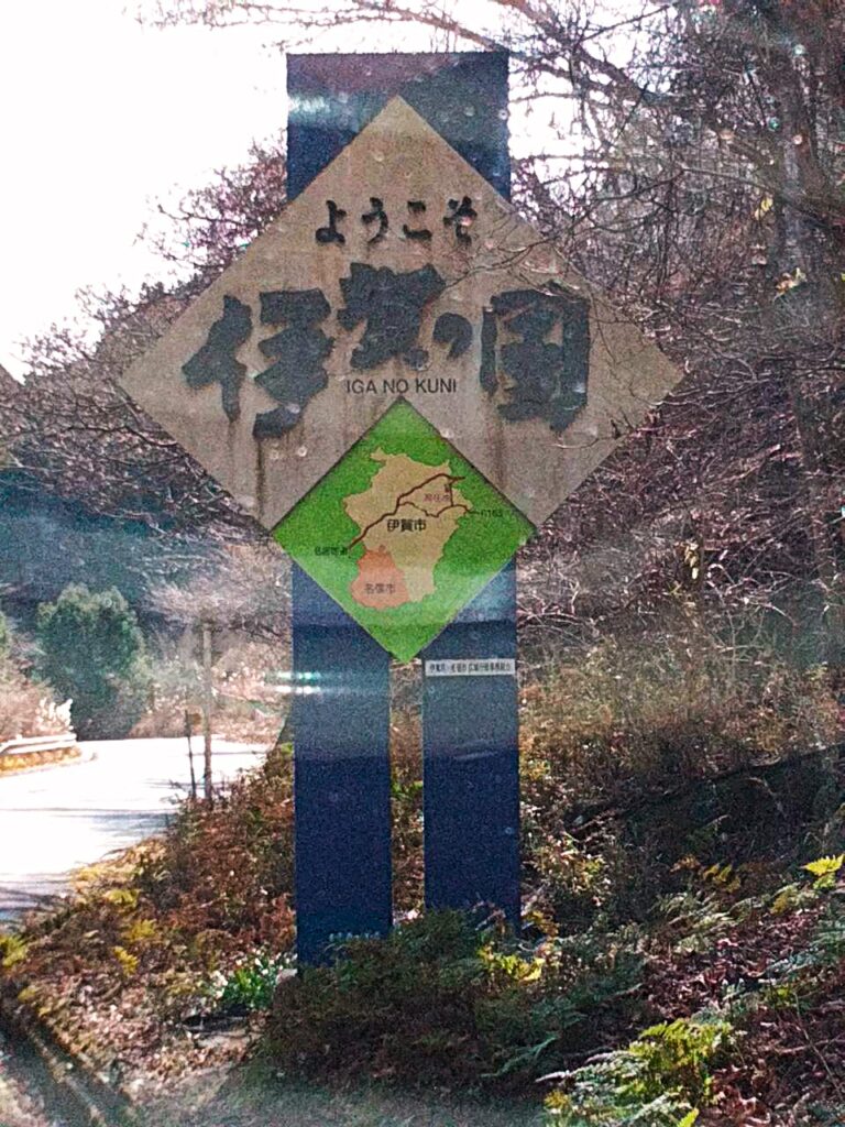 峠道に、『伊賀の国』って看板を見つけたとよ。