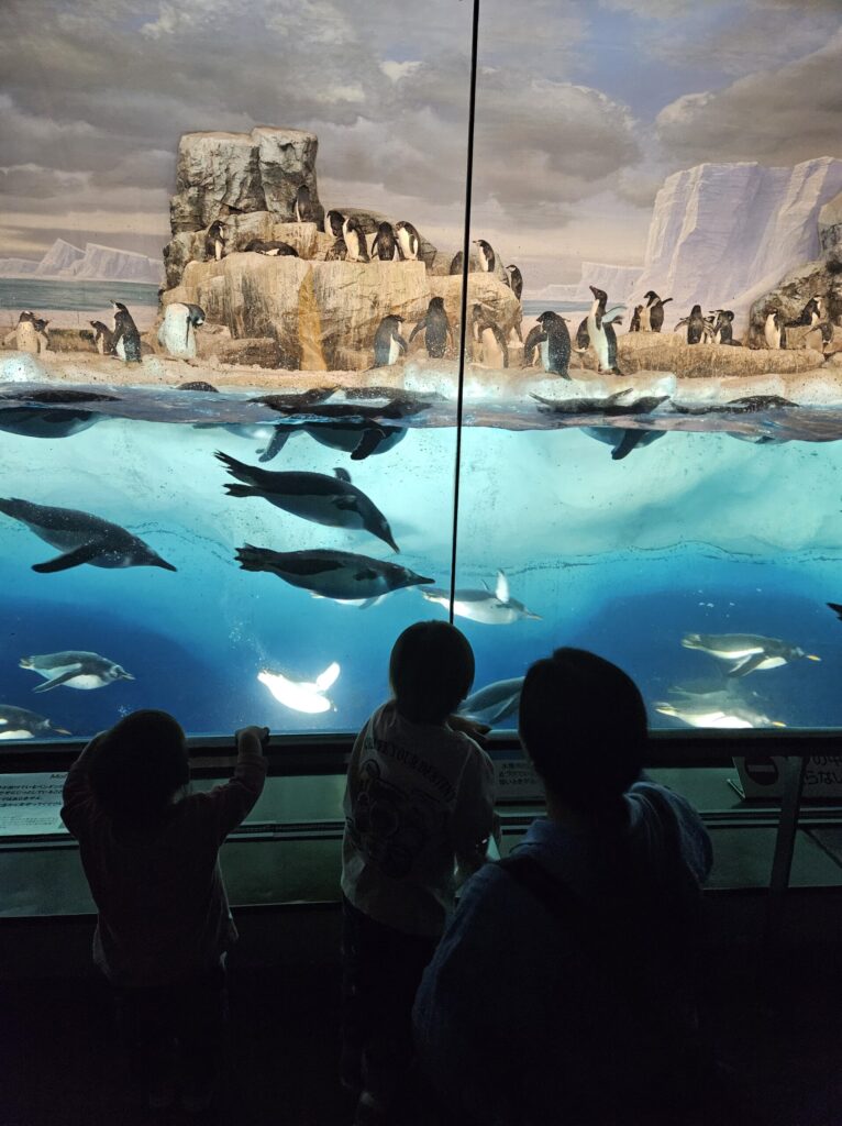 ペンギンを見て大興奮の子供たち、子供の笑顔は親として最高の喜びです!(^^)!