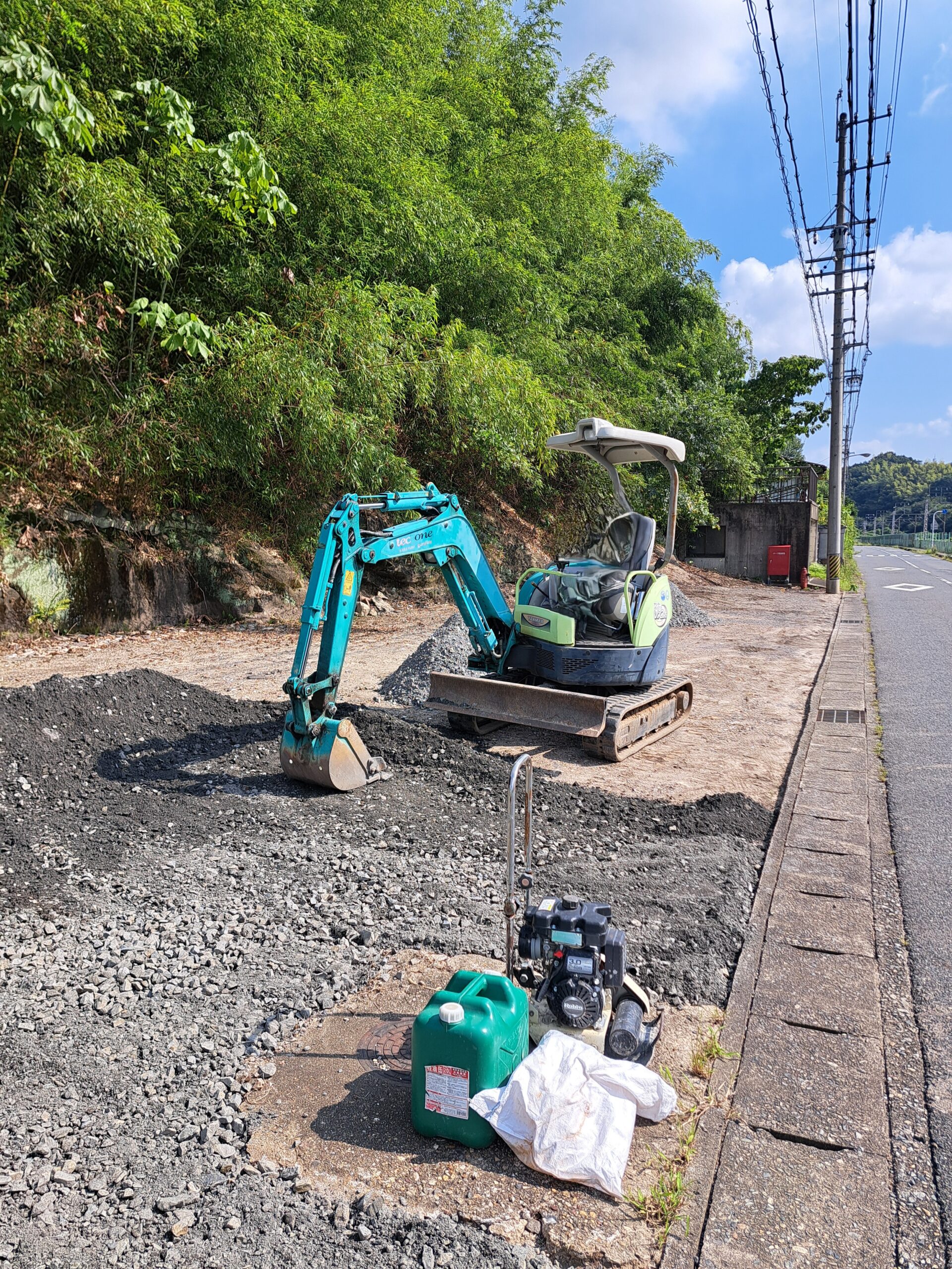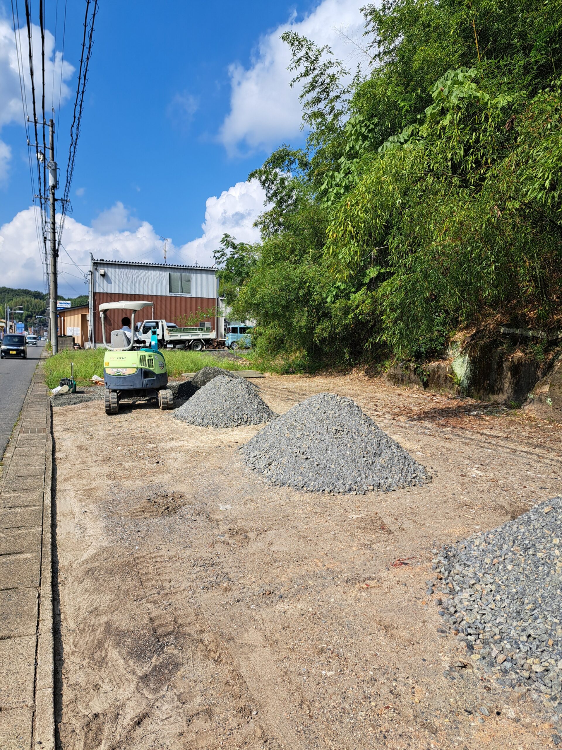 砕石を転圧しながら整地