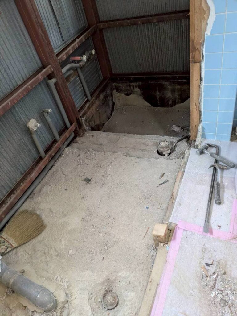 古くなったトイレと使用しなくなった在来のお風呂を壊して