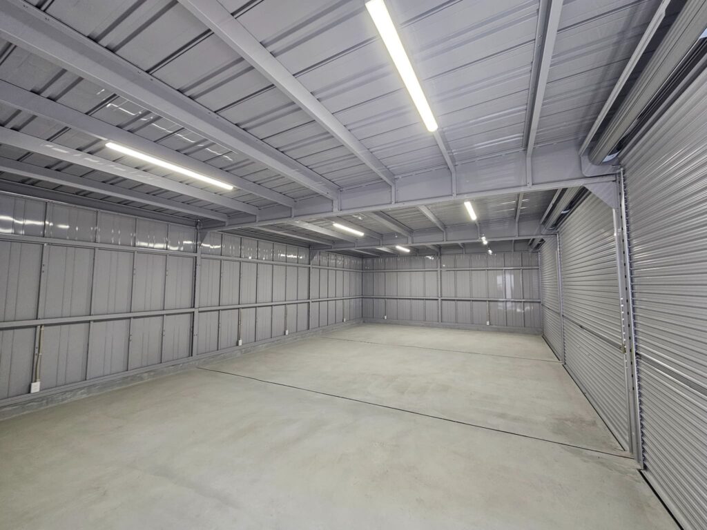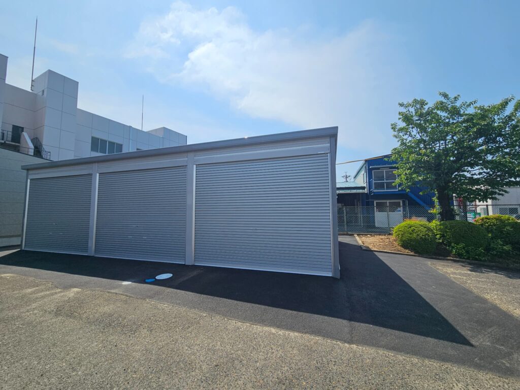 また、フォークリフトを格納するかもしれないため、シャッターの有効開口も大きめに確保しております。