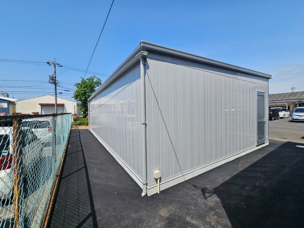 更地を整地・転圧・基礎工事を行い、イナバの倉庫の工事を組み立て+据え付け。