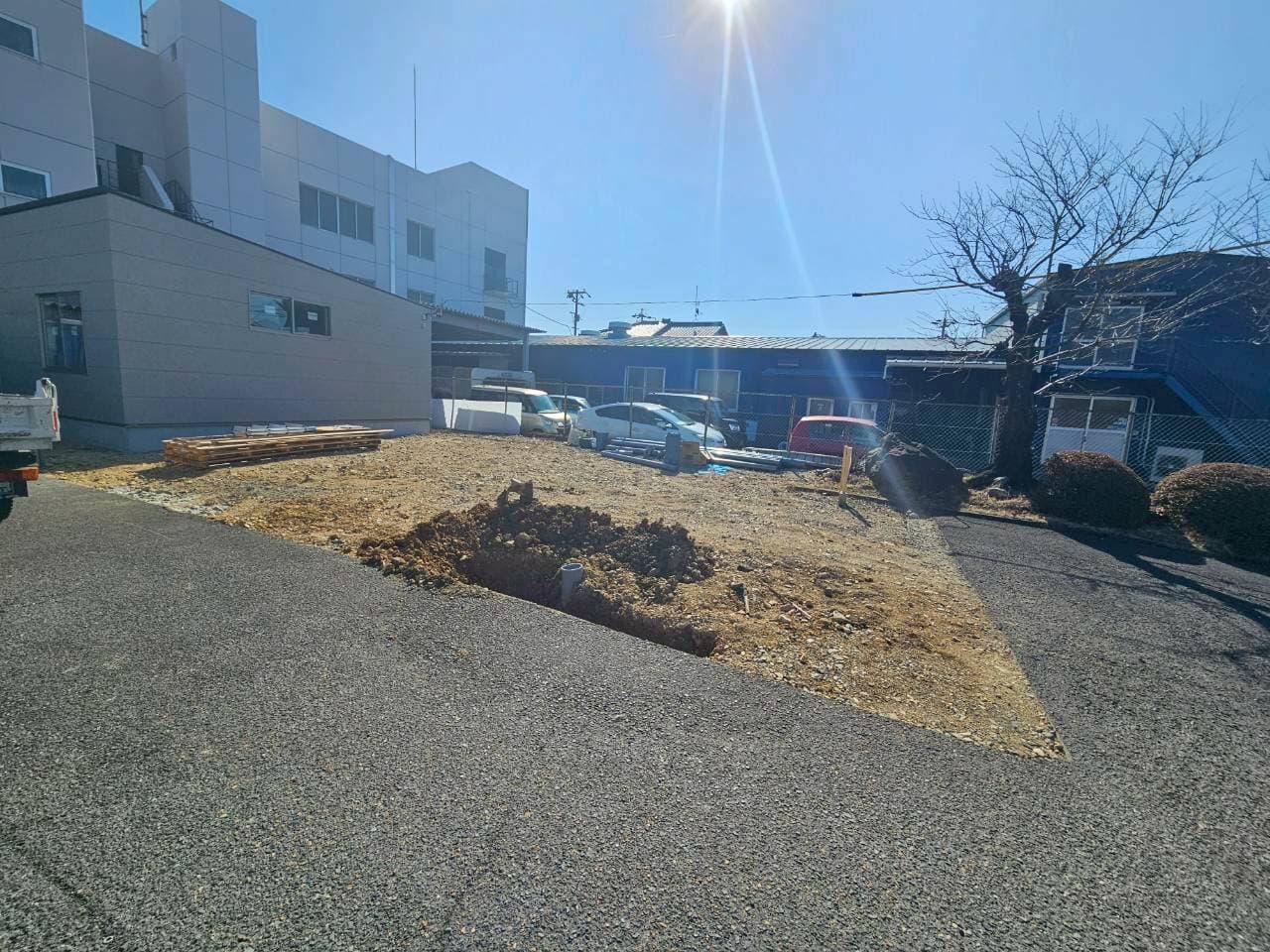 先日新築させていただいた、社員食堂の埋設配管等々がアスファルトハツりした部分に通っている為